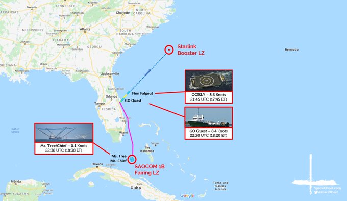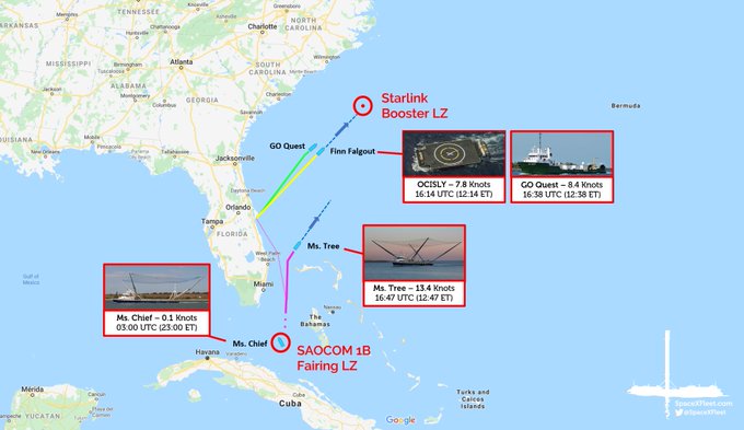 Ms. Tree and Ms. Chief are expected to take part in the Starlink mission too. Expect to see them offload their catch from the SAOCOM 1B mission at Cape Canaveral and then head to the Starlink LZ.