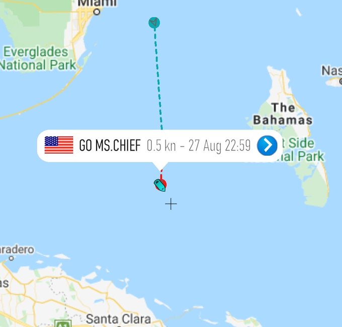 While GO Ms. Tree continues to the #Starlink LZ, it appears GO Ms. Chief may have stayed at the southern #SAOCOM1B landing zone after all. Last ping was almost 23:00 ET last night, well after Mystery left. A double header recovery weekend is looking promising. #SpaceXFleet
