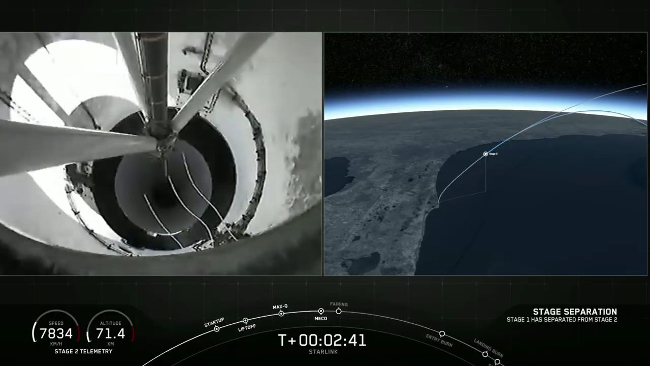 SpaceX confirms the 60 Starlink broadband satellites successfully deployed from the rocket's upper stage in orbit.