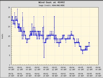 Bouy 41001 to the northeast shows a similar pattern but without the spike ahead of launch. Without weather balloon data we don't know upper level wind conditions. They did collect the remains so I'm sure SpaceX will learn from the loss regardless of the cause.