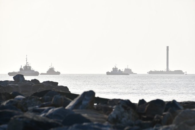 OCISLY and B1060.2 are off the coast and ready for their 7-8am arrival.  #SpaceXFleet #SpaceX