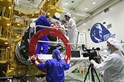 В соответствии с графиком работ специалисты РКК «Энергия» и профильных предприятий Роскосмоса выполнили комплекс технологических операций по стыковке ТПК «Союз МС-18» с переходным отсеком (ПхО) блока третьей ступени ракеты-носителя. ПхО входит в состав космической головной части и обеспечивает механическую связь корабля с головным обтекателем, а также интеграцию командного интерфейса «Союз МС-18» в бортовую систему управления ракеты-носителя «Союз-2.1а».
