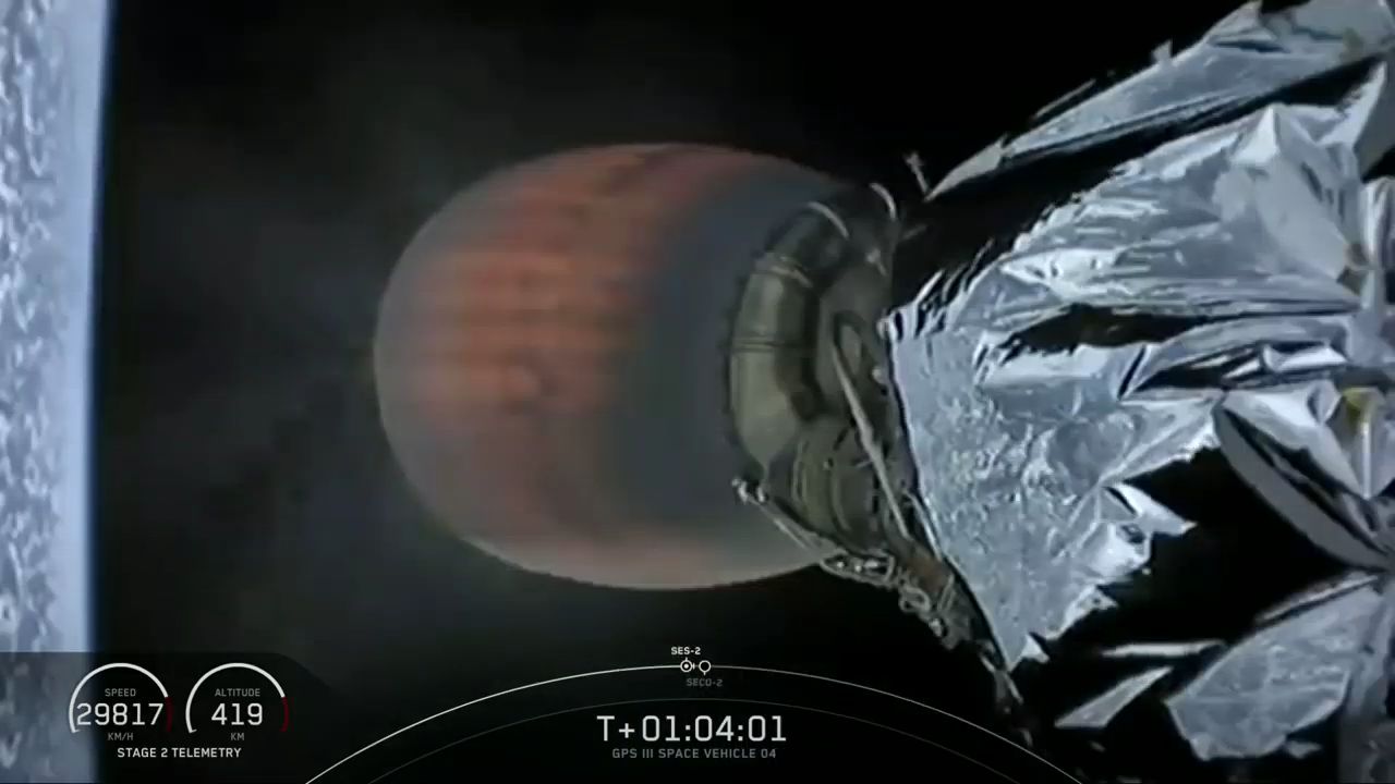 S/C Sep for GPS III SV04, following a successful launch on SpaceX's Falcon 9 B1062.1.