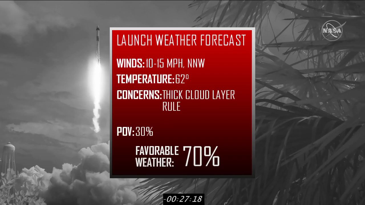 T-minus 41 minutes. All weather parameters are currently observed "go" at this time.