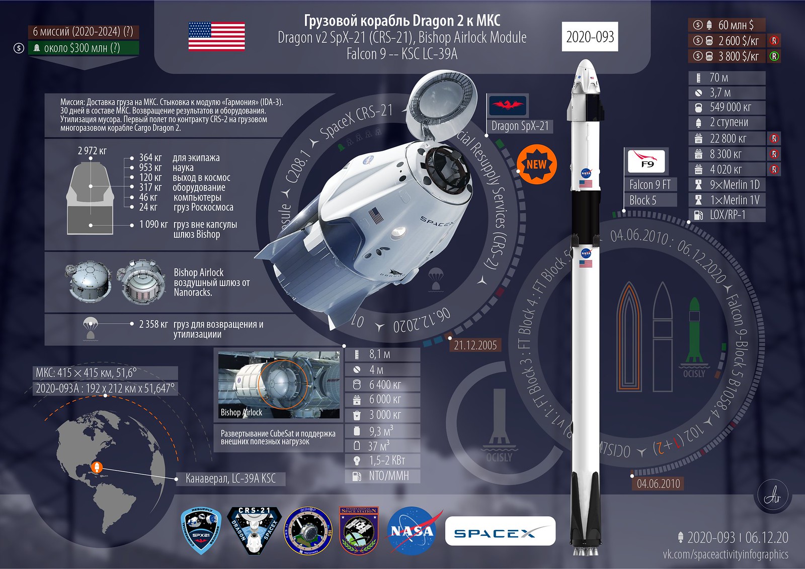 Dragon v2 SpX-21 (CRS-21), Bishop ALM - Falcon 9 (B1058.4) - KSC LC-39A - 06.12.2020 16:17 UTC
