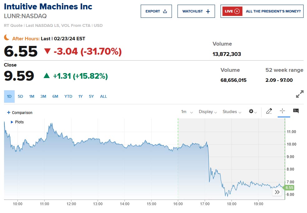 IM-1 (Odysseus Nova-C ) Intuitive Machines Lunar Lander – Falcon 9 (B1060.18) – Kennedy LC-39A – 15.02.2024 06:05 UTC