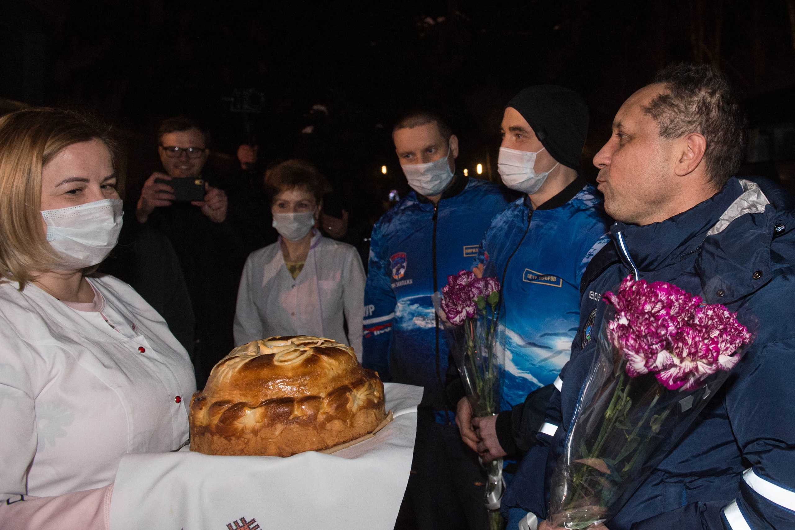 В ночь с 30 на 31 марта 2022 года космонавты Антон Шкаплеров и Петр Дубров прибыли в Звездный городок. Их встречали руководители и сотрудники ЦПК, представители Роскосмоса и РКК «Энергия», родные и друзья.