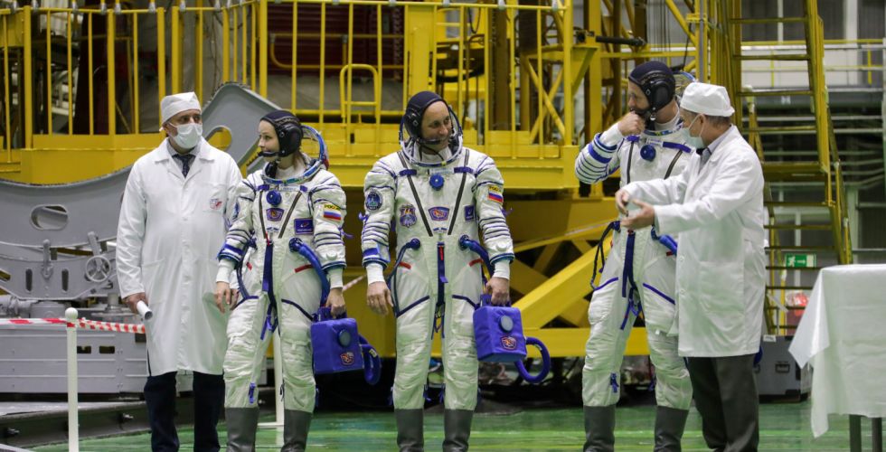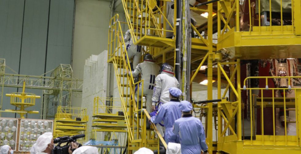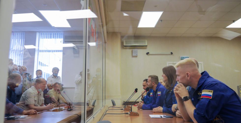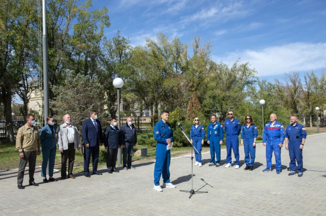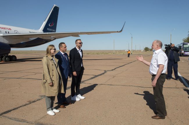 Олег Артемьев дважды совершал экспедиции на МКС и неоднократно был дублером у своих коллег, поэтому на Байконуре ему все знакомо. Участники космического полета Алексей Дудин и Алена Мордовина впервые увидели монтажно-испытательный комплекс космодрома.