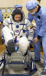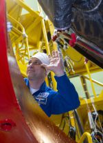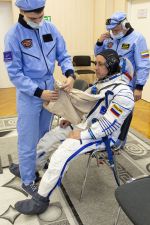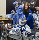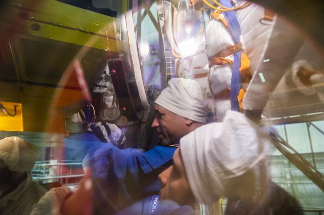 «Стоит отметить, что до этого дня основной экипаж проводил тренировки только на тренажерах космических аппаратов. Даже у Антона Шкаплерова не получилось до отлета в Казахстан посидеть в своем корабле. Поэтому для Юлии и Клима сегодня много нового: в тренажере, оказывается, места значительно больше. Заход в корабль тоже своеобразный: если на тренажере есть возможность заходить через технологический вход, то сегодня свои места космонавт и участники космического полета занимают через бытовой отсек и через люк-лаз. Поэтому сначала они пробовали разместиться в ТПК «Союз» в полетных костюмах, а после обеда проделали эту же процедуру в скафандрах. Это очень ответственная и специфичная операция, потому что скафандр увеличивает объемы тела. Поэтому нужно быть предельно внимательным, чтобы во время тренировки на корабле ничего на сломать и не замять», — рассказал командир дублирующего экипажа МКС-66 Олег Артемьев.