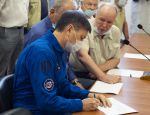 В соответствии с графиком подготовки космонавты примерили спасательные скафандры, протестировали их на герметичность и заняли места в своем корабле. Экипажи проверили служебное оборудование, изучили программу полета, ознакомились с бортовой документацией и запланированными к доставке на МКС грузами. Дальнейшие занятия участников экспедиции на космодроме включают тренировки по ручному причаливанию корабля к МКС, контроль укладок с доставляемым оборудованием, отработку баллистических операций и другие подготовительные процедуры.