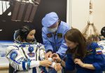Помимо «примерки» корабля в ходе тренировки примеряют полетные скафандры «Сокол КВ-2» и тестируют их на герметичность.