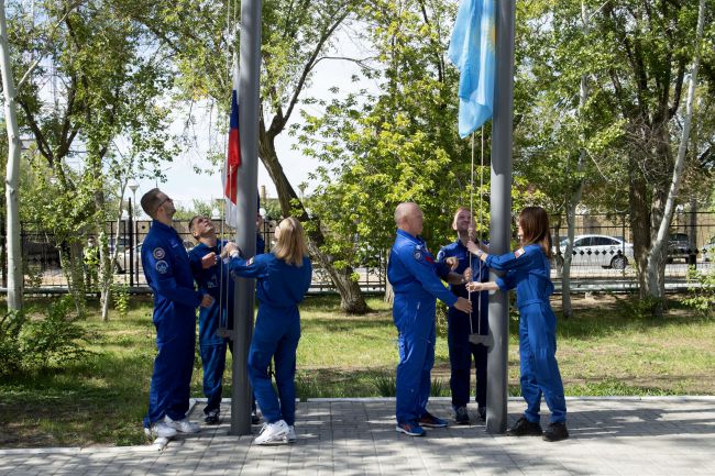Напомним, что в состав основного экипажа МКС-66  входят космонавт Роскосмоса Антон Шкаплеров, участники космического полета Клим Шипенко, Юлия Пересильд. Они поднимали флаг России. Их дублеры – космонавт Роскосмоса Олег Артемьев, участники космического полета Алексей Дудин и Алена Мордовина – флаг Казахстана.