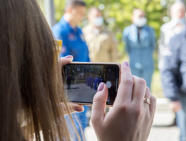 Космонавтов и участников космического полета провожали руководство и сотрудники ЦПК, коллеги, родственники и близкие люди.