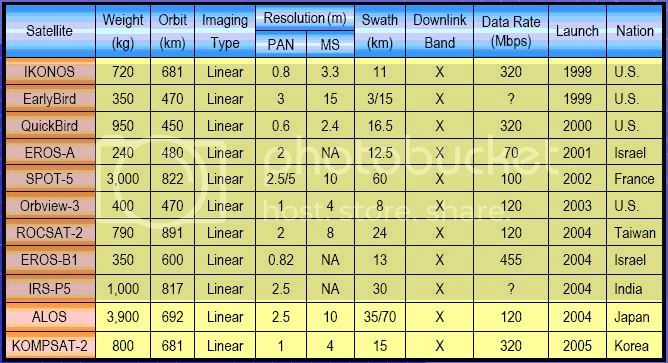 ЦитироватьУвеличить разрешение в 2 раза - совсем не означает увеличить массу в 8 раз. Пример: SPOT-4 и SPOT-5. Разрешение выросло вдвое (5 м у SPOT-5 против 10 м у SPOT-4), а масса осталась практически неизменной (2755 kg SPOT-4; 3000 kg SPOT-5) Аналогично энергетика (2.1 kW  SPOT-4; 2.4 kW SPOT-5)