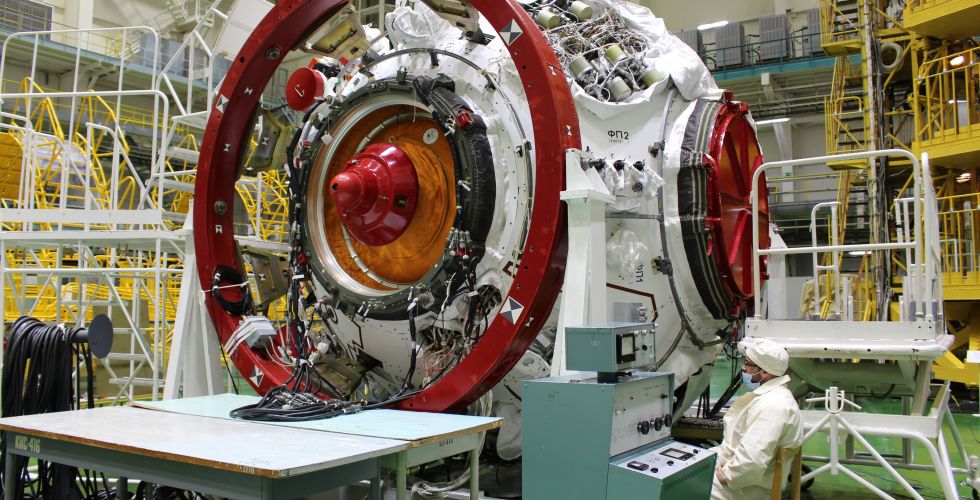 Одновременно на площадке № 254 продолжаются автономные электроиспытания узлового модуля «Причал» российского сегмента Международной космической станции, а в вакуумной камере зала 103 проводятся пневмовакуумные испытания корабля «Союз МС-19», предназначенного для доставки участников 66-й основной экспедиции на Международную космическую станцию в начале октября этого года.