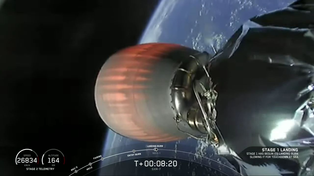S/C Sep for SXM-7, following the 25th Falcon 9 launch of the year.