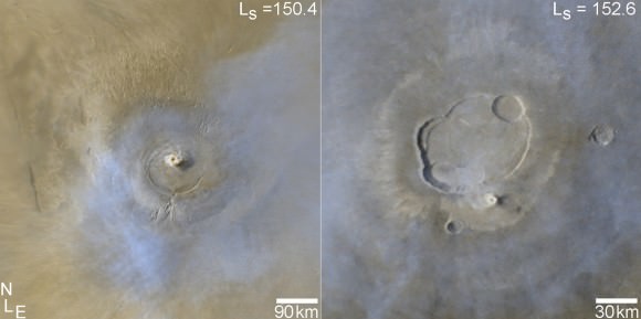 "Winter at the Martian South Pole is severe even by the standards of our Antarctic," said Professor Taylor. "The Pole is shrouded in total darkness for many months and the carbon dioxide in the atmosphere freezes, creating blizzards and causing a thick layer of carbon dioxide ice to form across the surface. Yet what we've found is that 30 kilometers above the surface conditions are very different."