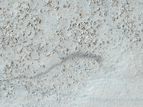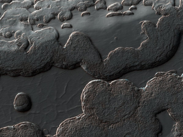 This picture shows surface textures in the southern polar residual cap of Mars. The cap was covered in seasonal carbon dioxide frost as this picture was taken.