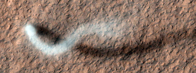 An afternoon whirlwind on Mars lofts a twisting column of dust more than half a mile (800 meters) high in an image from the High Resolution Imaging Science Experiment (HiRISE) camera on NASA's Mars Reconnaissance Orbiter.
