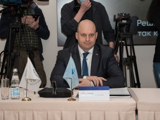 Заместитель городского головы, главный архитектор Алексей Комов выступил с презентацией брендбука космической Калуги и сообщением как она будет оформлена в праздничные дни.