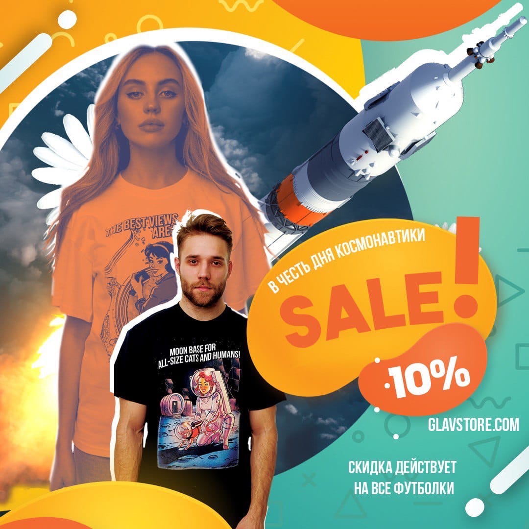 🚀В честь Дня космонавтики и 60-летия первого полета человека в космос интернет-магазин Главкосмоса glavstore.com подготовил для вас скидку 10% на все футболки!