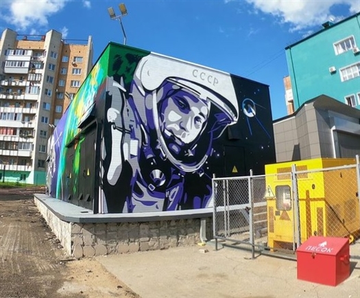 В Самаре на трансформаторной будке у железнодорожного вокзала появился новый мурал с изображением Юрия Гагарина.
