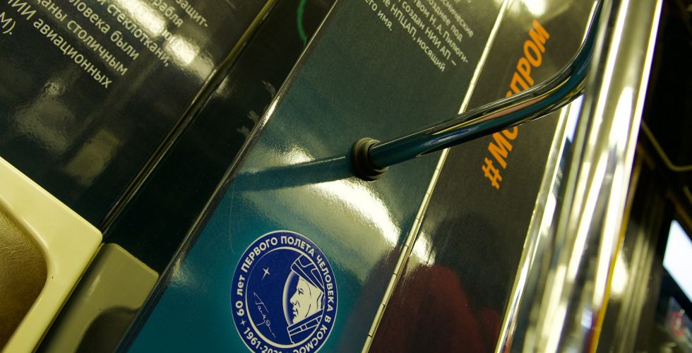 В четверг, 14 октября 2021 года, на Арбатско-Покровской линии столичного метрополитена запущен тематический поезд «Моспром-Космический». Сотни фотографий расскажут пассажирам об истории отечественной космонавтики и современном вкладе московских промышленников в освоение космоса. Передвижная выставка будет курсировать шесть месяцев. Проект «Моспром-Космический» создан при поддержке Госкорпорации «Роскосмос» и приурочен к 60-летию первого полёта человека в космос и Дню Московской промышленности.
