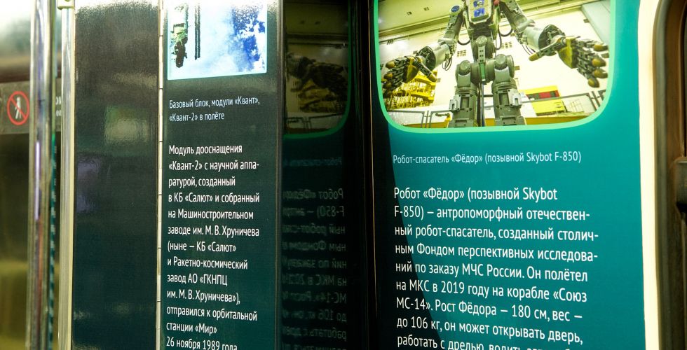Пассажиры метро во время поездки смогут узнать, что на предприятии «Квант» (входит в состав Госкорпорации «Роскосмос») изобрели и изготовили более двух тысяч солнечных энергосистем, которые устанавливались на орбитальных станциях «Салют» и «Мир», а также на борту Международной космической станции, на отечественных межпланетных аппаратах «Венера», «Марс», «Фобос». Инженеры опытного завода «Ангстрем» за полвека произвели две тысячи типов микросхем.