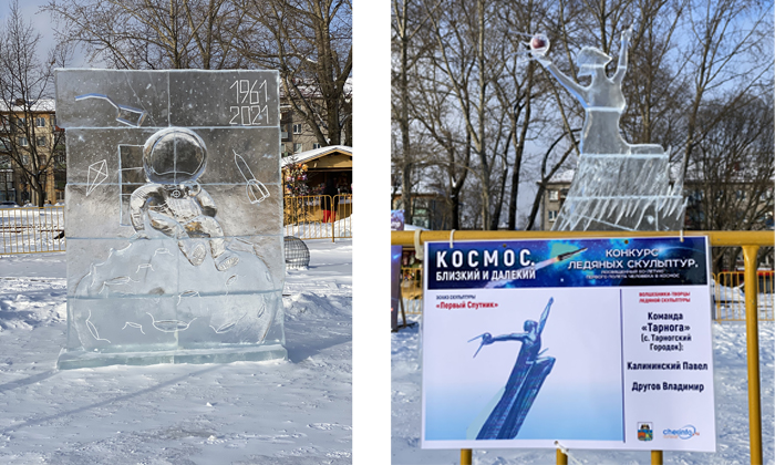 В Череповце завершился очередной-  lX - фестиваль ледовых скульптур.  В этом году конкурс был посвящен 60-летию полёта Юрия Гагарина в космос. Площадь Молодежи украсили 18 завораживающие своей красотой и хрупкостью ледяных скульптур: фигуры космонавтов, летательных аппаратов, планет, Вселенной...
