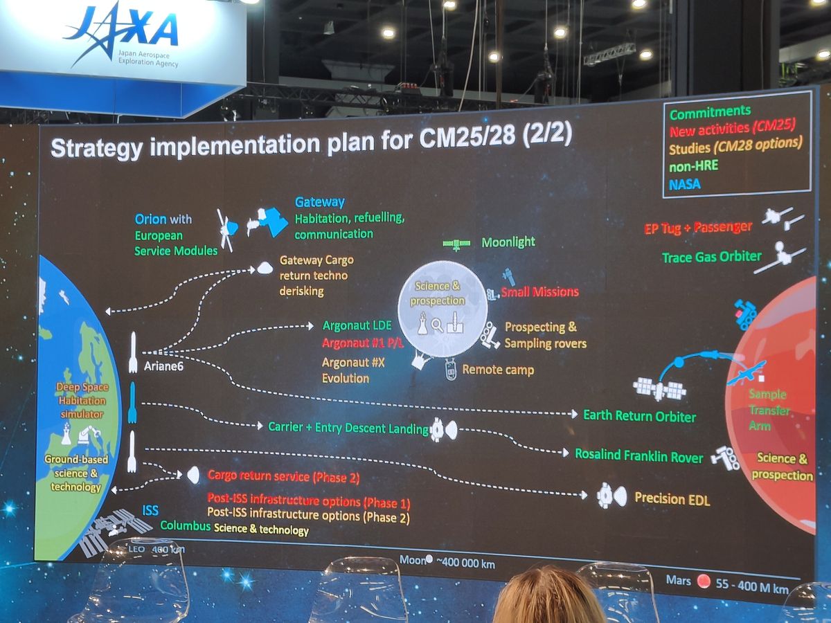 На следующем важном заседании Совета министров в 2028 году будут рассмотрены лунные разведывательные и пробоотборные миссии, возможно, лунный удаленный лагерь и возврат грузов с Луны Gateway, а также возможная эволюция посадочного модуля Argonaut. Также будет обсуждаться новый этап развития инфраструктуры после МКС.