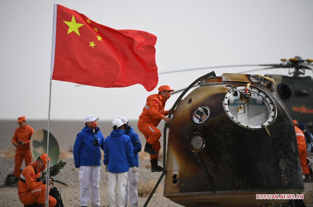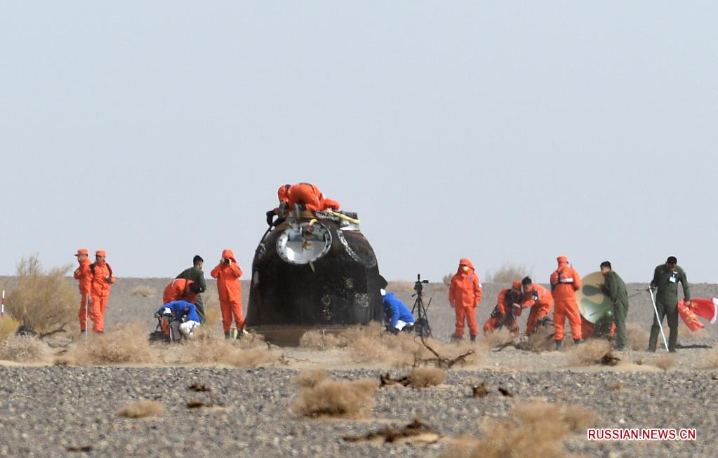 Возвращаемая капсула пилотируемого космического корабля "Шэньчжоу-13", на борту которого находились космонавты Чжай Чжиган, Ван Япин и Е Гуанфу, приземлилась на посадочную площадку "Дунфэн" в автономном районе Внутренняя Монголия /Северный Китай/.