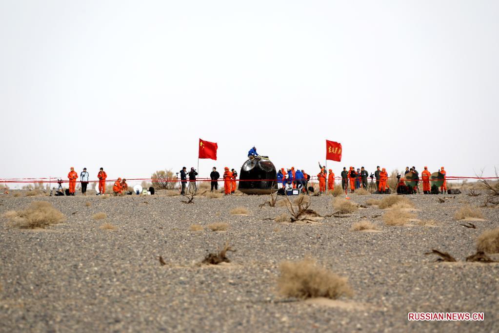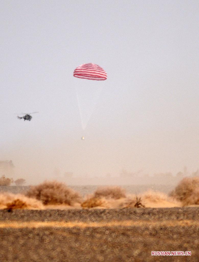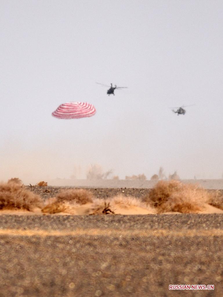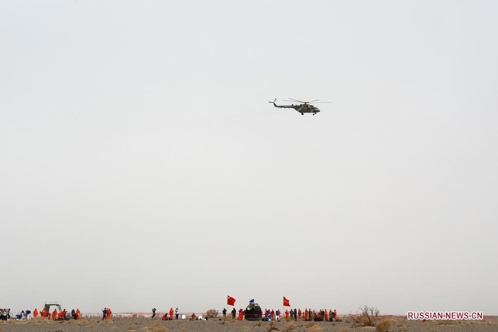 Пекин, 16 апреля /Синьхуа/ -- Три китайских космонавта - члены экипажа космического корабля "Шэньчжоу-13" - завершили свою шестимесячную космическую миссию и в субботу благополучно вернулись на Землю.