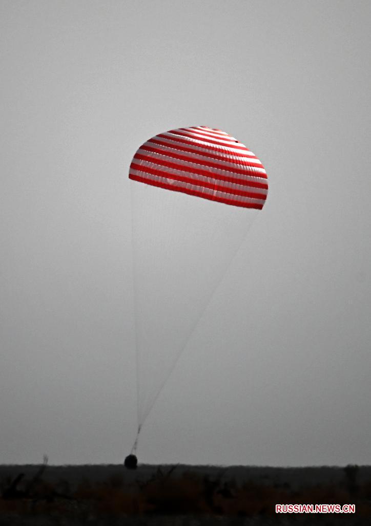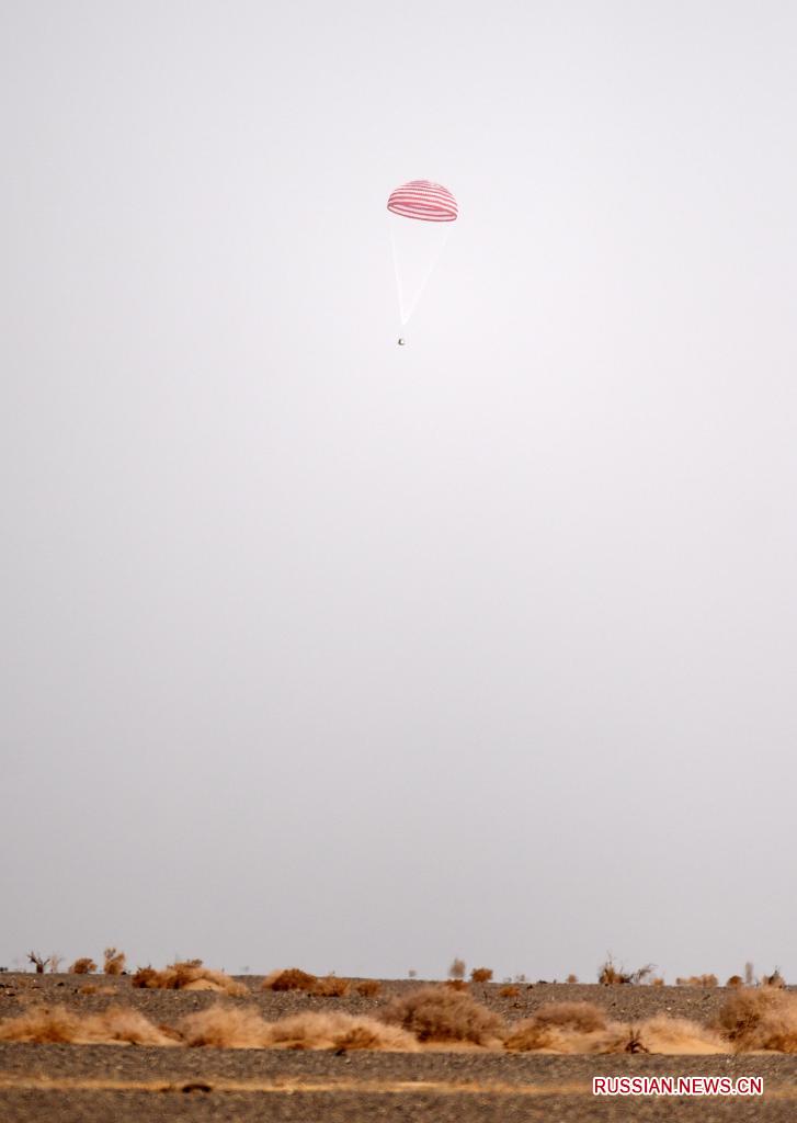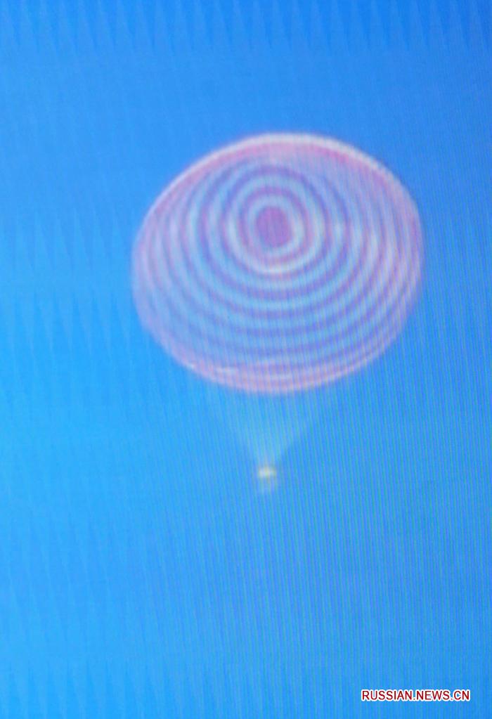 Капсула приземлилась около 10:00 по местному времени (05:00 мск). Как видно на трансляции, организованной телеканалом, к месту приземления прибыли специалисты поисково-спасательной миссии. После чего капсула была открыта. Как передает ТВ, все члены экипажа чувствуют себя хорошо.