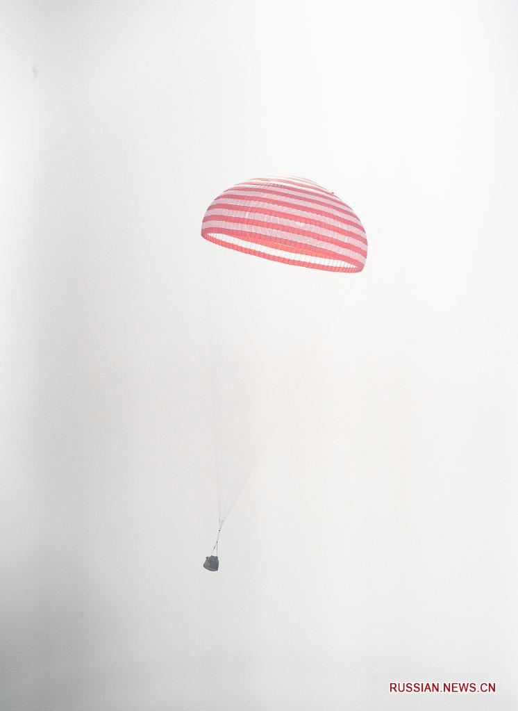 Пекин, 16 апреля /Синьхуа/ -- Основной парашют возвращаемой капсулы пилотируемого космического корабля "Шэньчжоу-13" успешно раскрылся. До приземления возвращаемой капсулы с тремя космонавтами на борту остаются считанные мгновения.