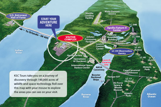 интерактивная карта - тут: http://www.kennedyspacecenter.com/visitKSC/index.asp