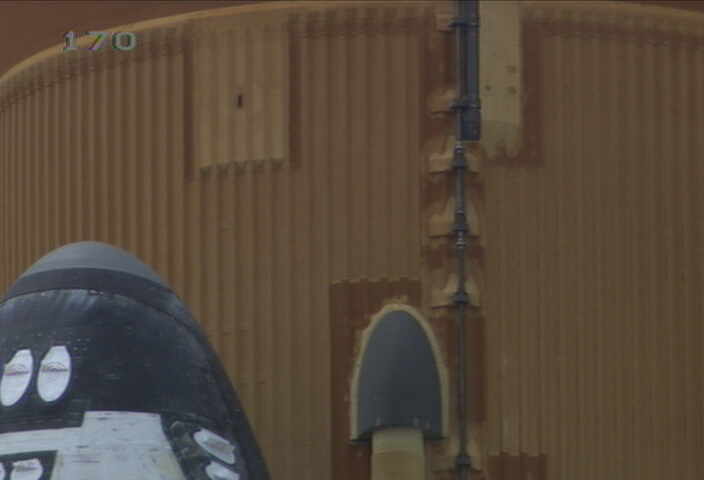 причем камера ближнего вида во время намечавшегося старта смотрела ровно на кабину шаттла, и после отмены старта ушла бродить правее