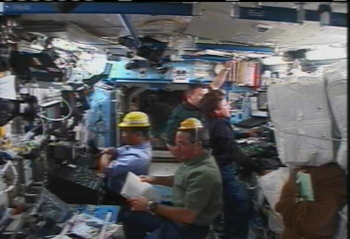 15:19 MSD (до 18:49 MSD) подготовка шлюзового тамбура Юнити/Рафаэлло и активация модуля (заняты: Сергей Крикалев и Венди Лоуренс)