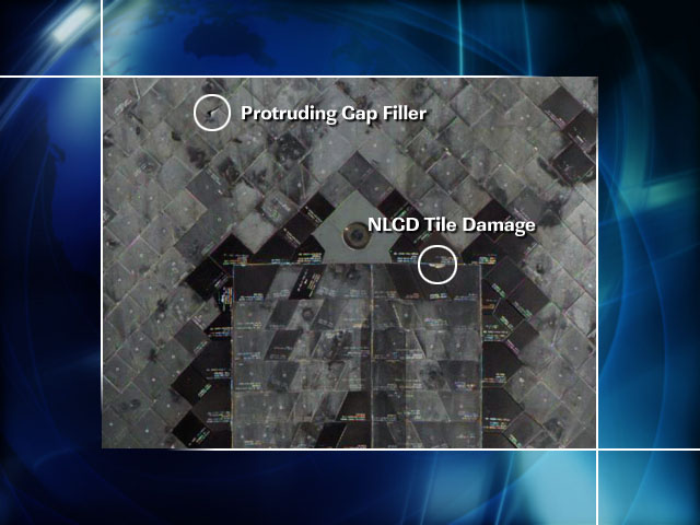 Officials said Sunday that two gap fillers appear to be sticking out no more than two centimeters from the surface of the tiles. Engineers are concerned that the gap fillers, made of ceramic cloth, could disrupt the boundary layer of air during reentry, causing increased heating on other portions of the orbiter.