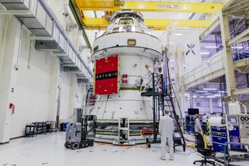 The European-built service module is the powerhouse that will propel the spacecraft to the Moon. Its four solar array wings which were installed to its exterior in early March. The latest addition of fairing panels on Orion's service module will protect the solar array wings, shielding them from the heat, wind, and acoustics of launch and ascent, and also help redistribute the load between Orion and the massive thrust of the SLS (Space Launch System) rocket during liftoff and ascent. Once the spacecraft is above the atmosphere, the three fairing panels will separate from the service module, allowing the wings to unfurl.