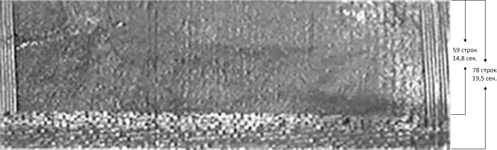 Я измерил в видеоредакторе время печати фрагмента (количество строк посчитано по нему). Ширина между полосками ИОХ нам известна, 500 точек. Из пропорции получаем растяжение при печати.