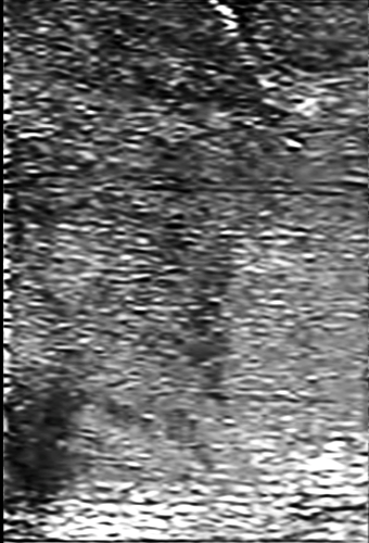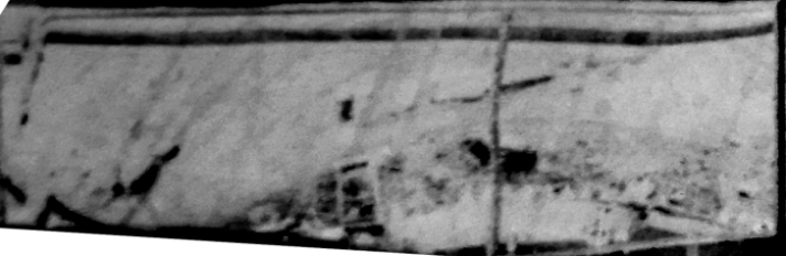 На этом основании мы можем исправить контраст информативной части отпечатка, подправить геометрию и растянуть, в соответствии с ранее рассмотренным предположением об увеличении скорости панорамного сканирования в 5.73 раза (один цикл обмена - один оборот панорамной камеры). Получилась вот такая картинка с камеры.