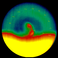 The images also show the presence of a collar of cold air around the vortex structure (dark blue), possibly due to the recycling of cold air downwards.