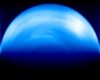 На этом снимке Венеры можно рассмотреть любопытные атмосферные образования в форме полос. Замеченные впервые космическим аппаратом Mariner 10 в 1970-е, они могут быть обязаны своим появлением присутствию пыли и аэрозолей в атмосфере планеты, но их истинная природа пока точно не установлена. Снимок был получен венерианским орбитальным аппаратом НАСА Venus Express.