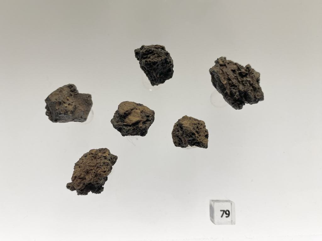 Австралия, кратерное поле Хенбури. Стекло Хенбури, 6 образцов природного силикатного стекла бурого цвета с примесями минералов и горных пород, размеры 10-25 мм, общая масса 15 гр.