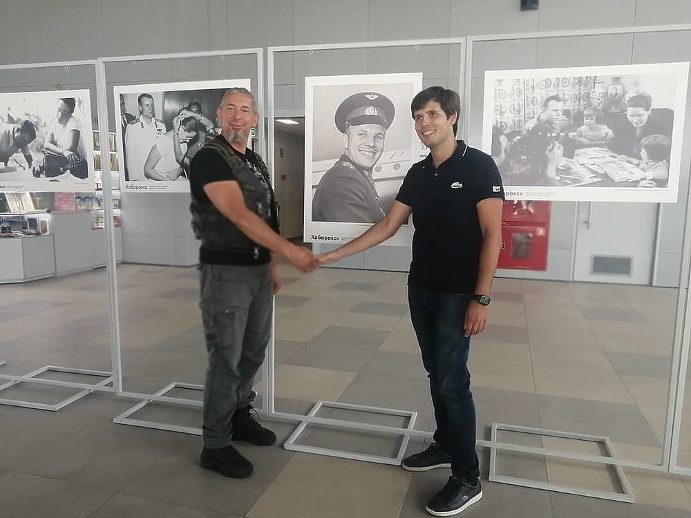 Встреча прошла в неформальной дружеской обстановке. Байкеры, в знак уважения к памяти первых покорителей космоса, подарили хабаровскому аэропорту знамя всероссийского мотопробега.