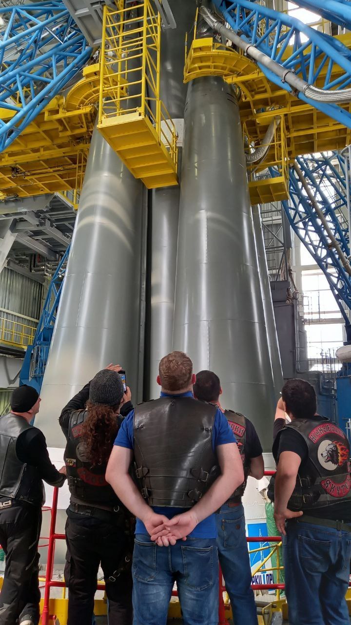 Парням было разрешено зайти в саму ракету, они посетили музей, побывали в сборочном цехе. В общем рассмотрели инфраструктуру максимально подробно. Позже в аккаунте хабаровского клуба «Ночные волки» одно за другим появлялись сообщение, из которых можно составить небольшой репортаж о том, что происходило на космодроме в день запуска: