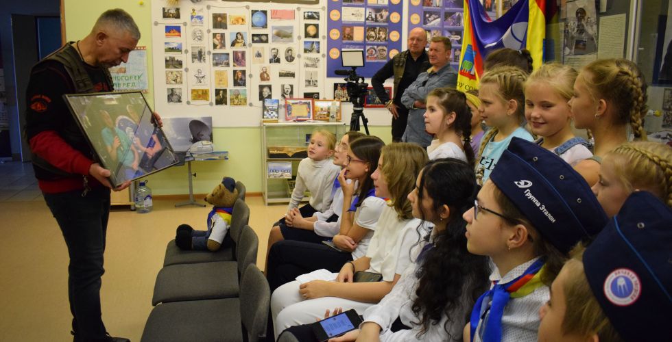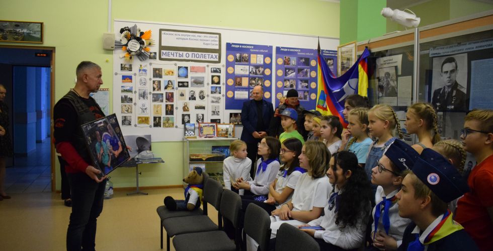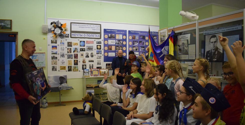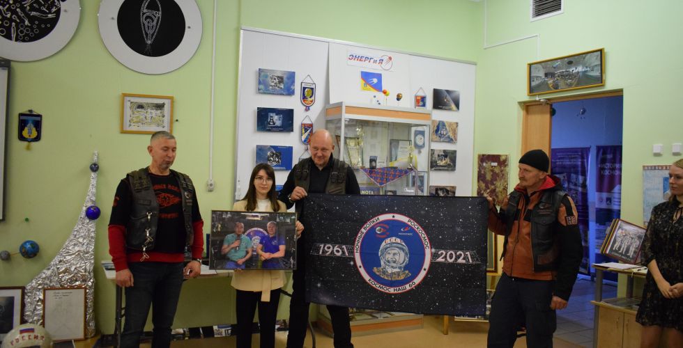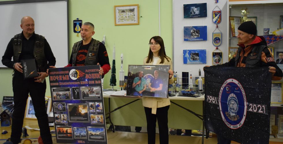 В школе № 18 города Красногорска прошло мероприятие по торжественной передаче школьному музею памятных подарков от Красногорского отделения Всероссийского мотоклуба «Ночные волки» по итогам Всероссийского мотопробега «Космос наш — 60»