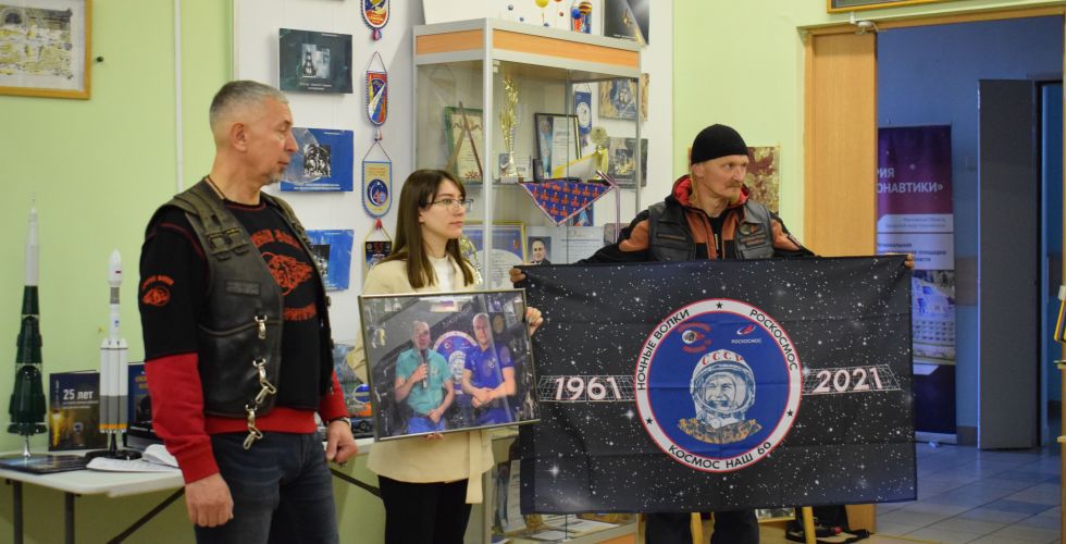 Для пополнения экспозиции школьного музея «Ночные Волки» передали флаг мотопробега, памятные плакаты, посвященные мотопробегу, а также элемент ракеты-носителя «Союз-2.1а» с первого пуска с космодрома Восточный 28 апреля 2016 года.