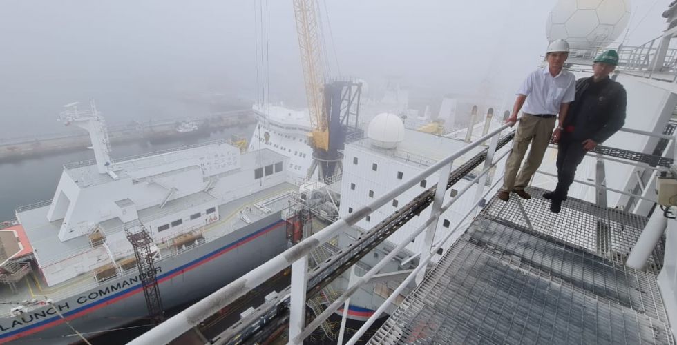 Мы вчера посетили плавучий космодром Sea Launch ("Си Ланч"). Это грандиозное событие. Для меня это было просто впечатление на всю жизнь, скажем так, да.