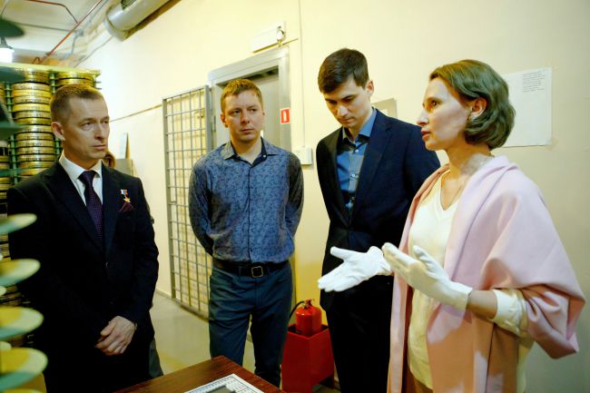 Космонавты Роскосмоса  Сергей Рыжиков, Алексей Зубрицкий и Кирилл Песков  стали гостями «Космического классного часа» – проекта, который реализует РГАНТД. Перед началом встречи со школьниками и студентами для почётных посетителей архива  провели экскурсию: показали фонды и рассказали про особые условия, в которых хранятся документы по истории ракетно-космической отрасли.